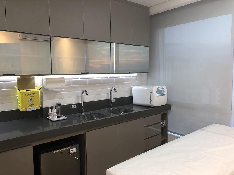 Sala climatizada, dentro das mais exigentes normas da vigilância sanitária, equipada com aparelhagem moderna, permitindo a realização de procedimentos não cirúrgicos como: